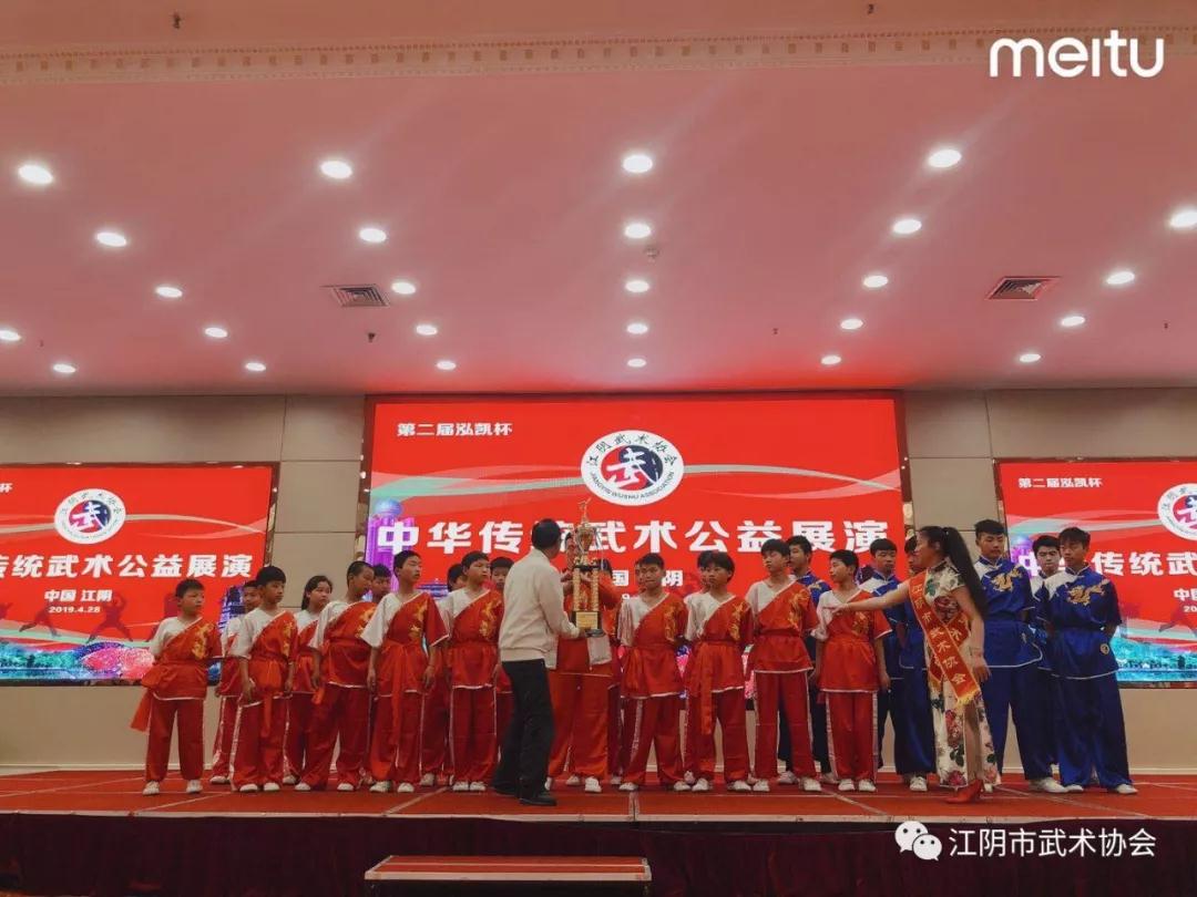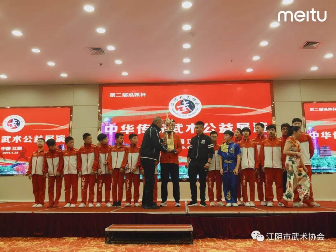 2019第二届“泓凯杯”中华传统武术公益展演于2019年4月28日在江苏省江阴市法尔胜大酒店举办,获得圆满成功。本次公益展演由江阴市武术协会主办,指导单位江阴市体育总会,江苏镇江华东武馆承办, 江苏法尔胜泓凯汽车运输公司冠名。协助单位有:南方集团公司,江阴市百绎牛仔纺织有限公司,江阴市嘉鑫贸易有限公司,江阴市澄祥鑫建设有限公司。