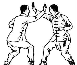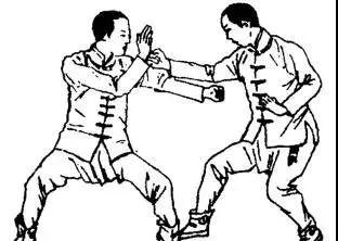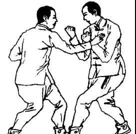 乙再退右足提左足,用左手将甲之右手向外推,右手即速用崩拳向着甲之腹打去。此为甲之起点头手,还打乙之头一手相同再往回打。仍是乙为甲之已来之式。甲为乙之已来之式循环往来不穷。若欲休息,仍还于原起点处,停住,自便休息。