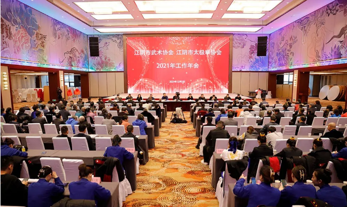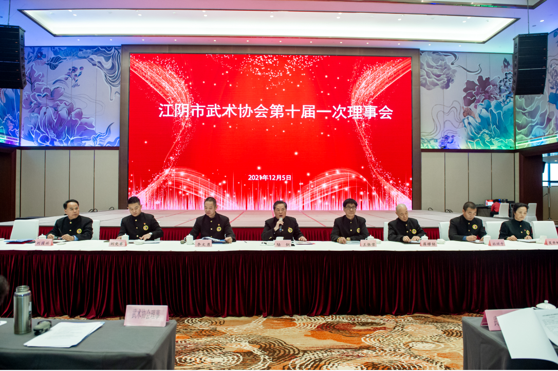 12月5日下午,江阴市武术协会十届一次理事会,江阴市太极拳协会三届五次理事会、党支部大会,两协会年会在海澜财富中心三楼满圆厅隆重举行,走出了两协会班子融合的第一步。江苏省武术协会主席周建平,江阴市人大主任、市老年体协主席孙小虎,江阴市副市长许晨,原江阴市人大副主任、市老年体协常务副主席龚振东,江阴市文体广电和旅游局局长钱晴、副局长李克雨、张健,江阴市民政局局长顾洪伟,江阴市卫健委主任谈海平,江阴市教育局副局长陆振华,以及特邀领导和嘉宾,两协会领导、分会负责人、协会部门负责人、全体理事、名誉会长、荣誉会长、特聘教练、兄弟协会代表等共200多人参加会议。