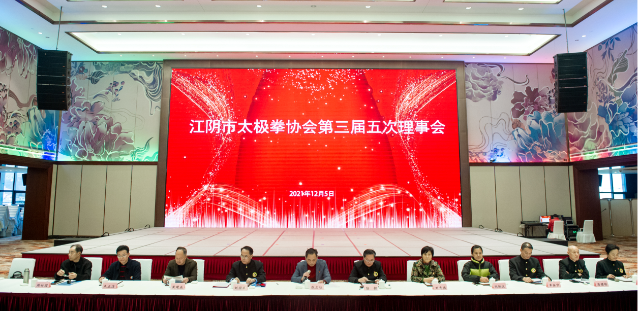江阴市太极拳协会三届五次理事会由原秘书长吴丹娜主持。会议通过了调整理事、常务理事及新增补副会长、秘书长名单,新增补卞琴珠等人为理事,新增补陆建东等人为常务理事,新增补吴丹娜为副会长,增补谭伟涌为秘书长。会议还通过了《2021年江阴市太极拳协会工作报告》、《2021年江阴市太极拳协会财务工作报告》。常务副会长张志钰宣读成立城区直属分会的决定,宣布设立杨氏太极拳教研组的决定。会议表彰了2021年先进集体和先进个人,新桥直属分会等5个分会被评为先进集体;李雪云等7人被评为优秀教练员;刘静等5人被评为优秀通讯报道员;肖惠琴等21人被评为优秀会员。陶新虎等7人被授予江阴市太极拳协会“荣誉会员”称号。会议还表彰了2021年参加市级以上比赛的获奖人员。