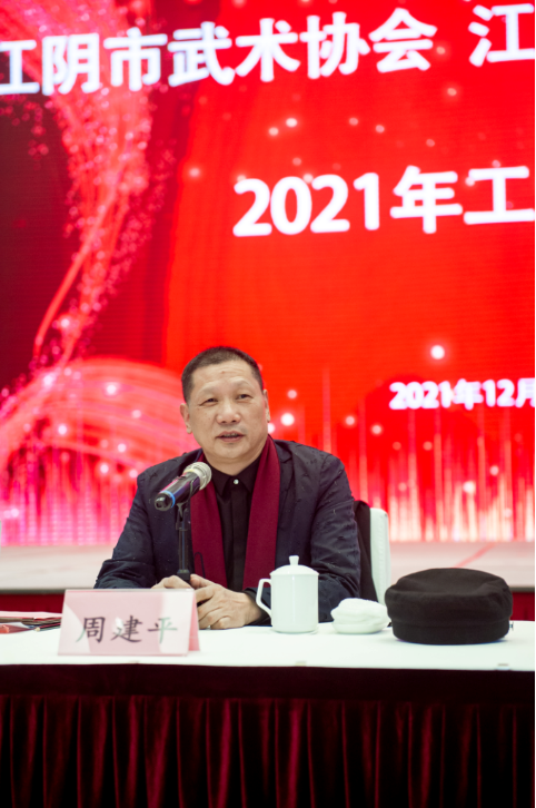 江苏省武术协会主席周建平,江阴市人大主任、市老年体协主席孙小虎,江阴市副市长许晨,江阴市文体广电和旅游局局长钱晴,江阴市教育局副局长陆振华在年会上分别发言和讲话。