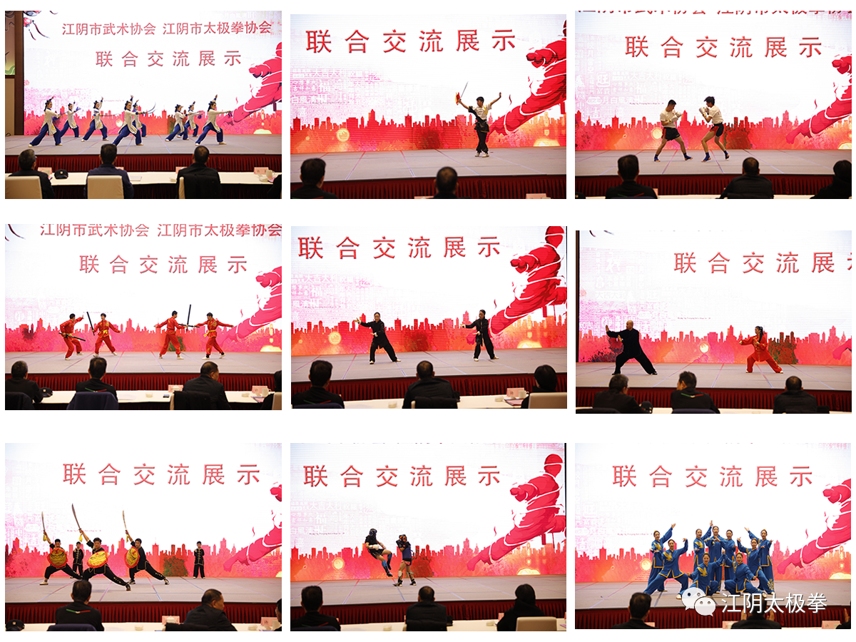年会上,两协会还进行了交流展示。老中青少齐聚一堂,名家高手依次上场,拳、剑、刀、棍轮番上阵。武术表演或疾若闪电,势如破竹;或虎步生风,气吞山河。太极表演或刚劲有力、浑圆自如;或松柔慢匀、行云流水。19个节目精彩纷呈,一气呵成,观众看得掌声不断,意犹未尽。