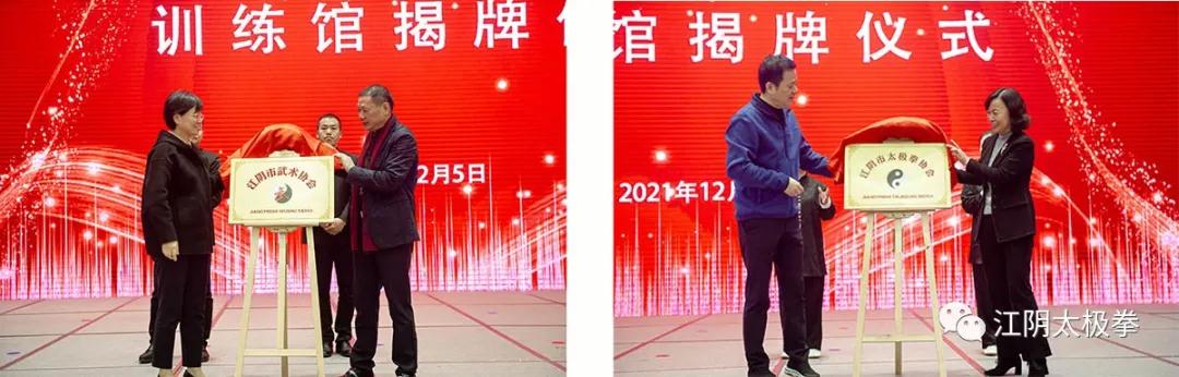 省武协主席、海澜集团创始人周建平先生热心于体育事业的发展,全力支持家乡武术、太极拳运动发展,为市武协、市太极拳协会提供了新训练馆。训练馆位于海澜财务中心二楼,面积达500平方米的商用大平层。年会上,周建平主席、许晨副市长为武协新馆揭牌,孙小虎主任、许晴局长为太极拳协会新馆揭牌。