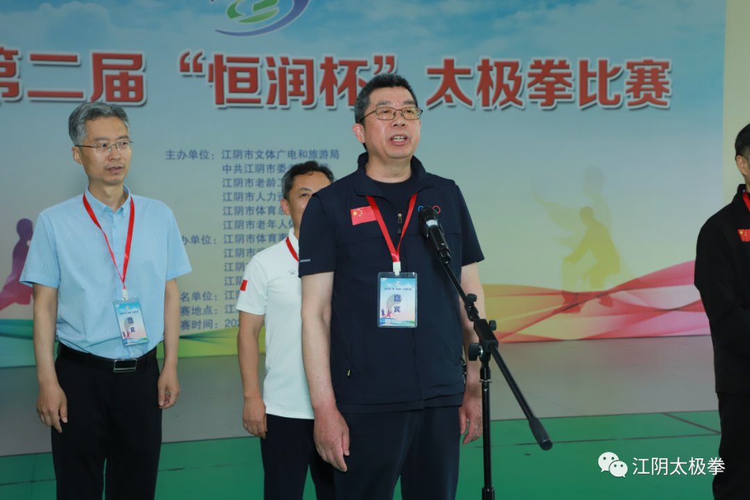 江阴市文体广电和旅游局体育事业发展中心主任李宁在开幕式上致辞,江阴市原人大副主任、市老年人体育协会常务副会长龚振东讲话并宣布比赛开始。