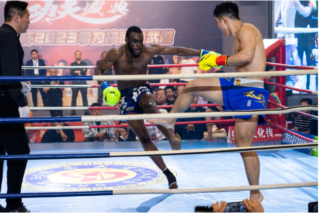 擂台上,运动员们闪转腾挪、拳拳到肉,对阵双方激烈搏斗,一招一式都扣人心弦。参赛选手努力将自身素质和战术水平发挥得淋漓尽致,直拳、摆拳、勾拳组合运用,正蹬腿、后摆腿、侧踹腿、横踢腿连环攻击。尤其是在80kg级中外对抗赛中,来自江阴德尚武道的中方选手李亚兴在经过前两回合的较量后,调整心态,顶住压力,奋力拼搏,最终取得了胜利。现场观众热情饱满,时而振臂欢呼、时而捶掌轻叹、加油叫好此起彼伏,呐喊助威声音震天,比赛氛围十分激烈。全场散发着搏击项目运动的独特魅力,顽强拼搏的体育竞技精神鼓舞人心。